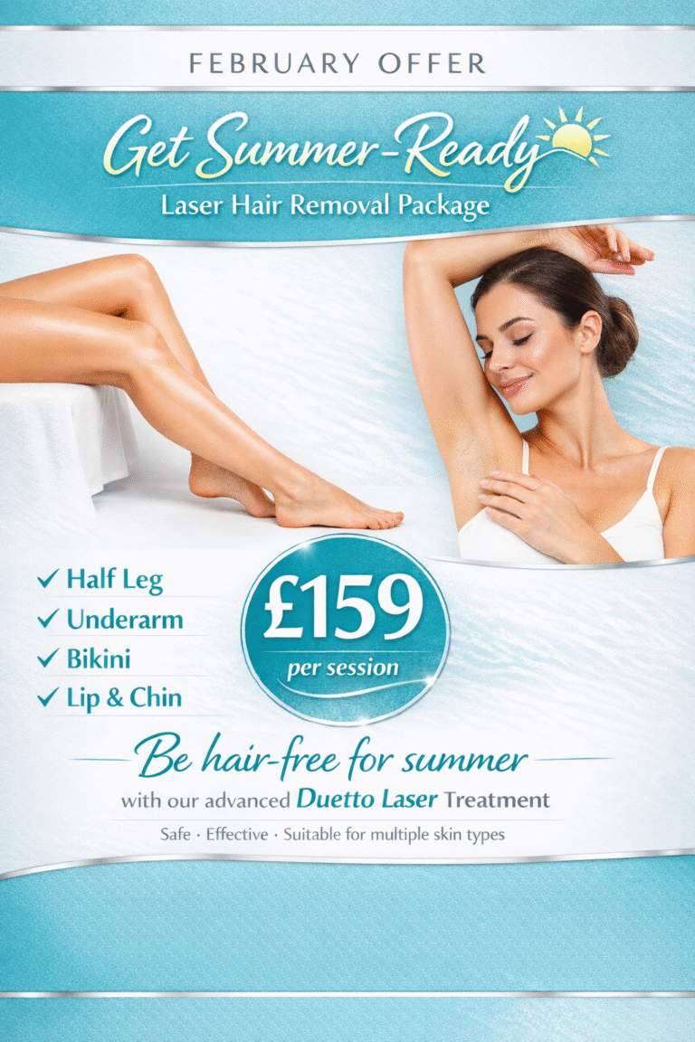 We have laser treatments for many skin concerns (including Acne , Rosacea, thread veins and sun damage) and Permanent Hair Removal.